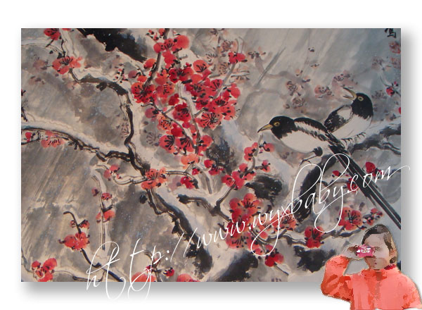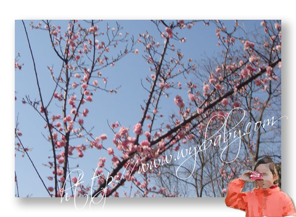 腊梅尚未凋谢,桃花已经盛开(园里有个梅花的书画展,六个小女生自己跑进去参观了。这是萱萱拍的其中一张,其它的因为闪光灯的缘故都白花花一片,嘻嘻)