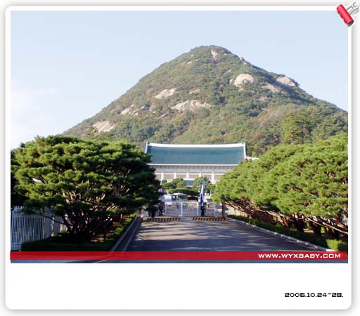 上个月的21~28日,妈妈出差了整整一周,先在威海开了2天会,其间见到了毕业13年都未见到的2个大学同学,老刘就在威海,见起来方便多了,她儿子又高又大完全没有爹妈的影子,记得以前总嘲笑他爹瘦得象竹竿“辱没”了山东大汉的称号,可惜这次“山东大汉”在北京,没能见着。和老刘一起去烟台看老李,36岁的年龄怀着2个月的身孕,妈妈可不敢让她动弹来威海,前面掉了好几个孩子,尤其最后一个临出生前却死在娘胎里,老李的心情不是我们能够体会得到的,祝福她这次母(子)女平安。 威海之后去了韩国,一个称自己为“大韩民国”的小小国家(日本也一样哦,叫自己“大日本帝国”),济洲岛、首尔、忠州、丹阳,自然风光是无论如何不能和中国相提并论的,想看的、看得多的是当地的风土人情。 首尔的总统府——青瓦台,因屋顶的青瓦而得名