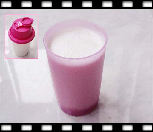 今早的营养水果餐,还泛着诱人的泡沫呢,其实的颜色应该是粉粉的。左上角是在特百惠买的摇摇杯,最大的用途就是用香蕉/猕猴桃+牛奶给小丫做奶昔喝。