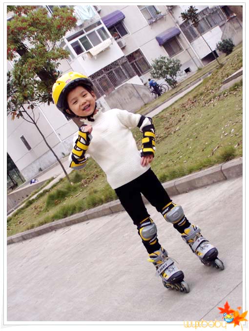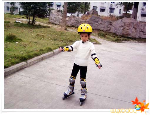 出差回来听到的第一个喜讯:“妈妈,我会溜冰了。”人家就昨天上了一堂课就对老师崇拜的五体投地:“老师先教我学会摔倒了怎么爬起来,还教我平衡和穿轮滑鞋如何走路。”不相信?小丫亲自秀给我看。