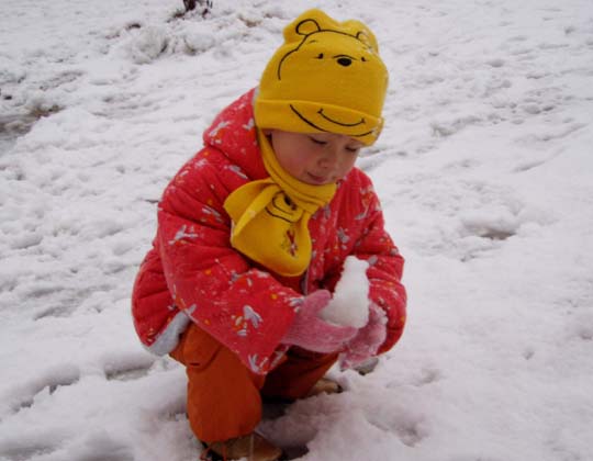 | 终于下大雪了。雪纷纷扬扬地飘着,萱萱在这漫天的雪花中快乐地笑着,看着她,我的心也跟着飘了起来。