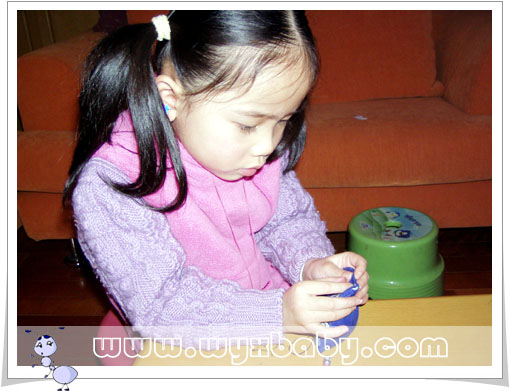 此图片仅显示局部,请点击查看完整图片  “李阿姨说要在线的地方缝,这样近了米就不会漏出来。”说着说着针尖扎了指尖,看得我心一缩,“没关系的妈妈,没有破。”平时小丫最怕疼,没想到现在会这么勇敢。很快漏的地方补好了,小丫高兴得把沙包抛来抛去,“艾比今天也缝沙包了,她的米装了一点点,我装了这么多米。妈妈咱们玩丢沙包吧。”当然好了,可怜的小丫,屁股上挨了我好多沙包,乐得她“嘎嘎”直叫,而她呢,即使我站着不动,丢5次也顶多打到我一次,最后只好背转身接受她的“惩罚”。[Edit on 2005-1-25 9:33:30 By wyxbaby] |