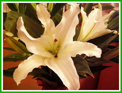 香水百合,萱萱会说:“好漂亮的花哦,妈妈。”