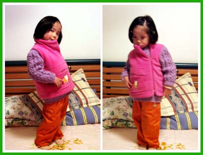 这是萱萱上次跟着电视学的模特步,故意装出酷酷的样子