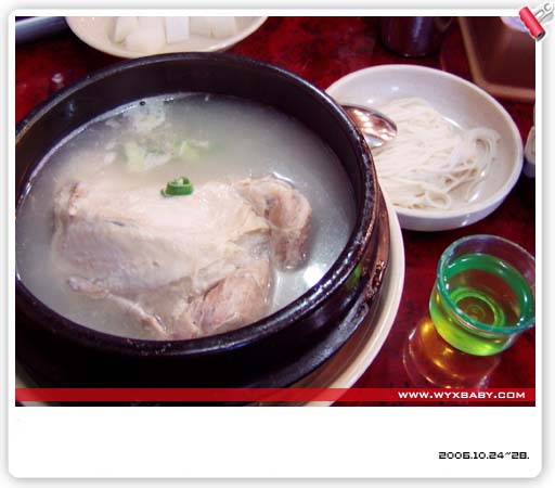 此图片仅显示局部,请点击查看完整图片  临去韩国前在威海吃了很正宗的牛尾汤,“到韩国可就吃不到肉了,更别提这么好喝的汤。”话虽然夸张了点,不过饮食习惯的差异确实很大。这第一顿的“人身礅鸡汤”算是最对口味的了