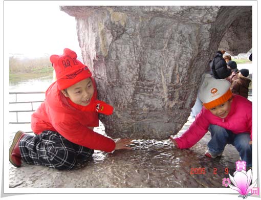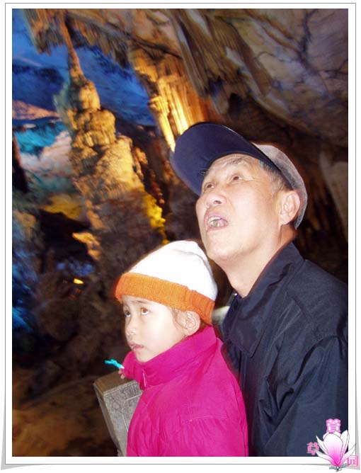 此图片仅显示局部,请点击查看完整图片  才进伏波山就见一口重达2700多公斤的生铁大钟,在导游叔叔的鼓动下,秀秀气气的萱萱小姐摩拳擦掌搬动了一回,厉害!试剑石又称状元石,自洞顶垂悬而下的巨石在距地面仅寸许之处戛然而断,据说能用一只手同时触摸到巨石与地面之人有朝一日可以金榜提名,楚儿小姐和萱萱小姐当仁不让摸了个够,什么大学生、研究生、博士,统统不在话下。至于它旁边的佛脚,萱萱小姐用了吃奶的劲也没够着,看来这“临急抱佛脚”都是有学问的呀。此图片仅显示局部,请点击查看完整图片  最后的行程本来安排的是游览象鼻山,因为天下起了小雨而临时改成了芦笛岩。听导游说原先岩洞前的山坡上长满芦荻草, 用它可以做成笛子,吹出悦耳动听的声音,芦笛岩就是因此而得名。洞中的石钟乳、石笋、石柱、石幔、石花有七十多万年历史,千姿百态,栩栩如生,且不说我们是如何被眼前美景所惊叹,单听听萱萱小姐的惊乎“哇,好漂亮哦!”“哇,太好看了!”“哇!哇!哇!”就可以想象出是多么神奇的大自然杰作。